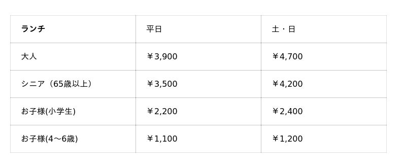 *ご予約は11:30a.m.入店/12:00p.m.入店にて承ります。