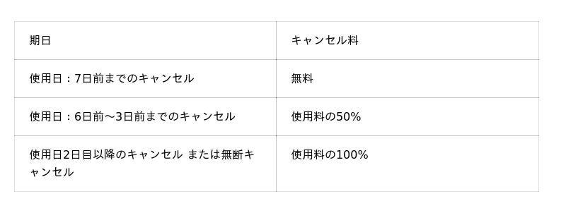全プランにおいて、キャンセルポリシーは下記の通りです。