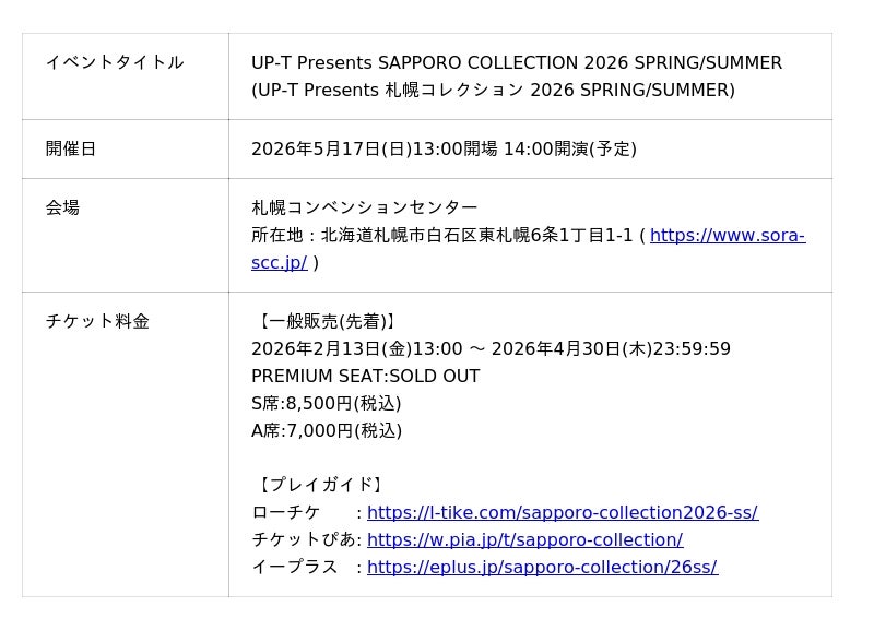 ■『UP-T Presents SAPPORO COLLECTION 2026 SPRING/SUMMER』について