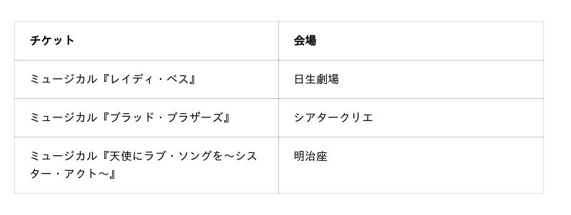 本商品券での購入者限定の人気公演チケットは以下の通りです。なお、2026年3月末までの販売となります。