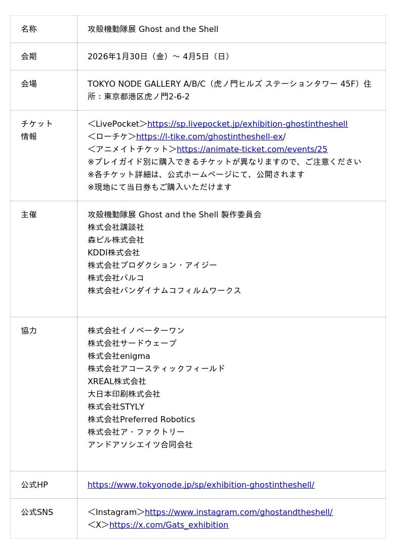 攻殻機動隊展 Ghost and the Shell会場・開催概要