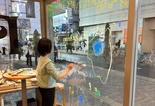 こうして生まれた作品は、「ひと」と「まち」の記憶をつなぐことを目的に、カフェや商業施設など、日常の中に展示され、まちを彩ります。このプログラムでは「アート」だけではなく地域の方々とのコミュニケーションや、実際にプロのアーティストと会話をし、ともに作り上げていくという体験価値を 得ることができ、その時間や風景が、子どもたちの記憶に残ることを大切にしています。