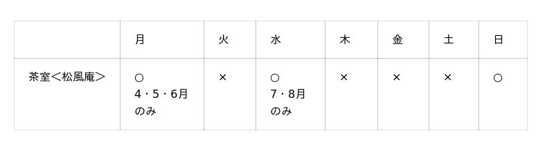 ■営業日:4月6日(月)~8月30日(日)