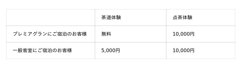■料金(抹茶・お菓子付、サービス料・税金込):
