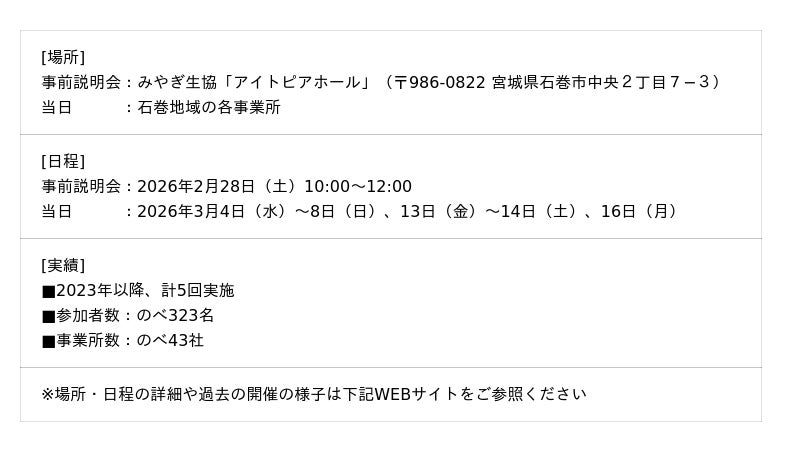 一般財団法人まちと人と(所在地:宮城県石巻市/代表理事:斉藤誠太郎)は、高校生・大学生が石巻地域で様々なボランティア体験を通じて、自分の興味関心を発見し、将来の可能性を広げるプログラム『まきボラ』を開催いたします。