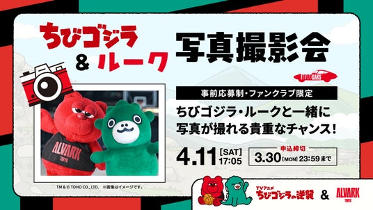 アルバルク東京マスコットキャラクター「ルーク」と TVアニメ『ちびゴジラの逆襲』の主人公「ちびゴジラ」と一緒に写真が撮れる写真撮影会を実施します。