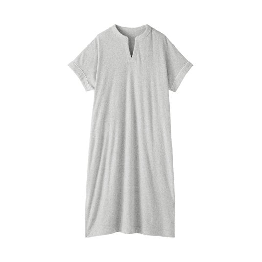 締め付けのないストンとしたリラックス感のあるシルエットのワンピースです。キーネックで女性らしい抜け感をプラスしています。身体のラインを拾いにくく、一枚で自然に体型をカバーしてくれます。