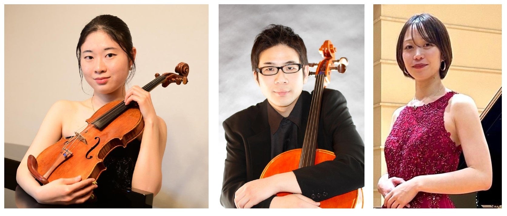 ▲(写真左から)岡田 奈々(ヴァイオリン)、高城 晶一(チェロ)、中山 佳奈美(ピアノ伴奏)
