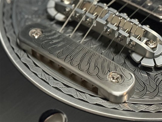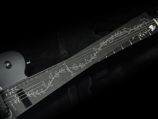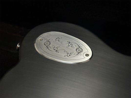 ●トラスロッド・カバーは小鳩ミク・オリジナル・ デザインの彫金が施されている