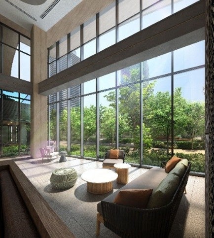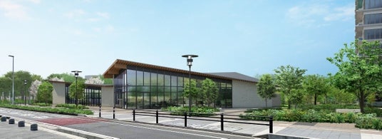 ※掲載の各完成予想CGは計画段階の図面を基に描き起こしたものおよび周辺環境写真等を合成したもので、建物の形状・色等は実際とは異なります。なお形状の細部、設備機器等は表現しておりません。表現されている植栽は初期の育成期間を経た状態のものを想定して描いており、竣工時は植物の育成を見込んで必要な間隔をとって植えております。施工上の都合により、設定位置・樹高・本数等変更となる場合があります。