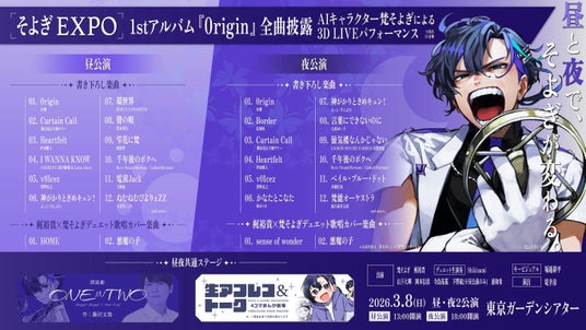 AIを脅威として排除するのではなく、デジタルとアナログが交差する「共創」のパートナーと捉える――。声優ならではの表現を未来へつなげていくという想いのもと展開されてきた「そよぎフラクタル」は、2度のクラウドファンディングによるファンとの共創を経て、3DエンタテインメントLIVE『そよぎEXPO』にて、その世界観をリアルなライブ体験としてお届けします。