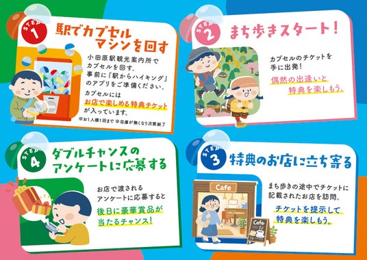 常時誘客まちづくり委員会(事務局:小田原市観光協会)は、「いつ来ても楽しめるまち・小田原」 の実現に向けた新たな観光プロモーションとして、カプセルトイを活用した体験型企画「おだわらカプセル」を、2026年3月1日(日)から3月31日(火)まで実施します。本企画は、JR東日本が主催する全国規模のウォーキングイベント「駅からハイキング」で設定されている「歩いて発見!小田原の城下町とデザインマンホール」と同時開催します。小田原駅を起点に、旅の“偶然性”を観光体験に取り入れた、新しい回遊促進施策です。