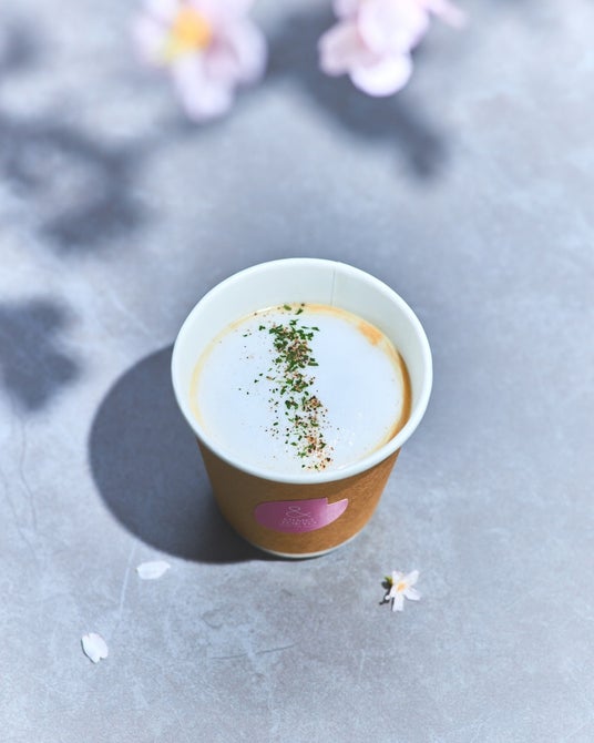 【桜仕立ての抹茶ラテ/桜仕立てのココア】 各¥880(税込)