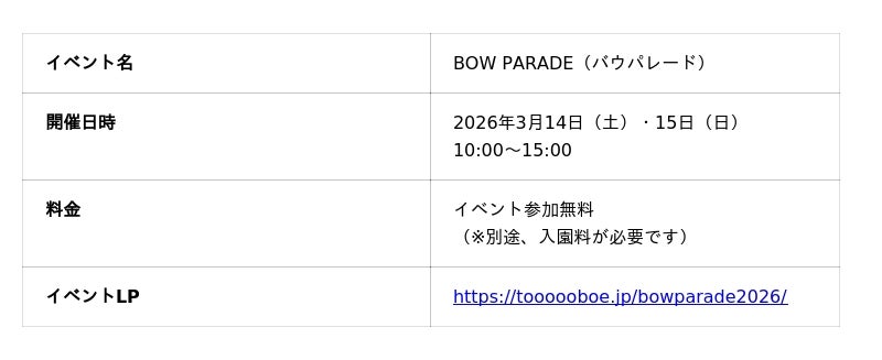 2025年秋に「Enjoy!花とあそぶ」をコンセプトにリニューアルした「ぐんまフラワーパークプラス」では、2026年3月14日(土)・15日(日)の2日間、ワンちゃんと飼い主様が主役の大型イベント「BOW PARADE(バウパレード)」を初開催いたします。