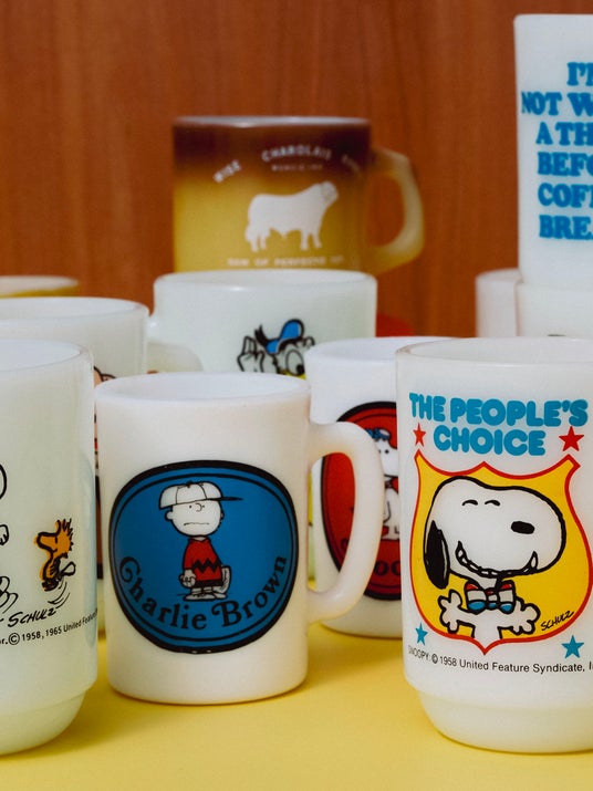 今回はLAのディーラーからセレクトされたコレクションより、1960~70年代の希少なラインナップが登場。マグを中心に、ミルクガラスのプレートやボウルなど100点以上が揃います。