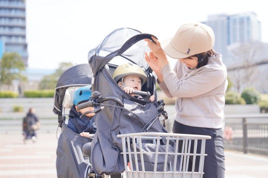 最新の自転車用チャイルドシート、レインカバーを体験。