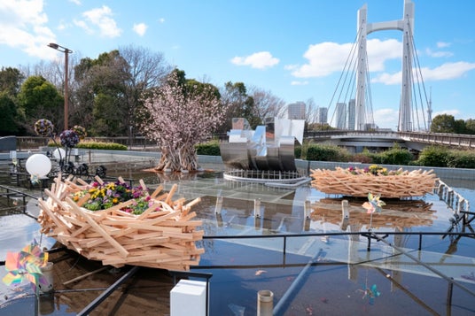噴水を舞台にした、光と桜の新たな「お花見体験」
