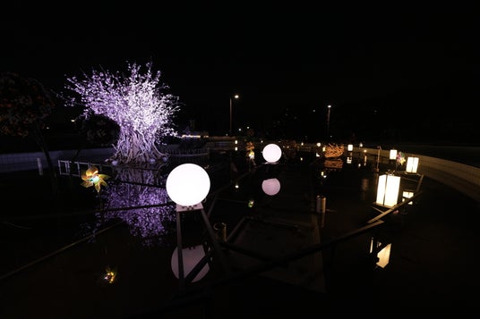 水面に浮かぶ「灯」を再現したライトアップ
