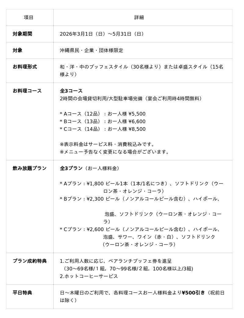沖縄本島最南端に位置する糸満市にあるサザンビーチホテル&リゾート沖縄(所在地:沖縄県糸満市西崎町1-6-1)では、2026年3月1日(日)から5月31日(日)までの期間中、沖縄県民・企業・団体様を対象とした2026年「歓送迎会プラン」の販売を開始いたします。