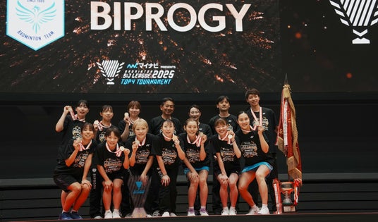 公益財団法人日本バドミントン協会(Badminton Association of Japan、「BAJ」)は、2026年2月28日、3月1日の二日間、横浜BUNTAI(神奈川県横浜市)にて開催した「マイナビ PRESENTS バドミントンS/Jリーグ2025 TOP4 Tournament」の結果をお知らせします。男子は、「NTT東日本」※1、女子は「BIPROGY」※2が総合優勝を果たし、2025シーズンの王者が決定しました。