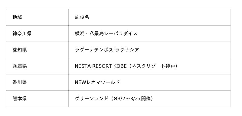※グリーンランド(熊本県)のみ、3月27日(金)までの開催となります。