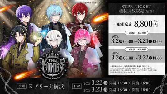 株式会社STPR (本社:東京都渋谷区 代表:柏原真人、以下「STPR」)は、当社所属の2.5次元歌い手アイドルグループ「めておら - Meteorites -」(通称:「めておら」)のワンマンライブ『Meteorites 2nd One Man Live -THE KINGS-』(2026年3月22日(日)・23日(月)開催)について、STPR TICKET 機材開放販売を2026年3月2日(月)00:00に開始いたしました。あわせて、新曲『流星の約束』のMusic Videoを公開いたしました。
