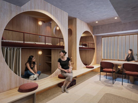 Osaka Metro御堂筋線「心斎橋」駅から徒歩2分と、観光・ショッピングの拠点として利便性の高い立地に位置します。4名定員と6名定員で半数ずつの客室構成で、特に6名定員の広い客室を充実させた設計としています。また、大人同士のグループ旅行にも対応した「バンクベッドルーム」では、独立性の高い2段ベッドを2台配置し、リビングスペースで会話を楽しめるレイアウトとしています。