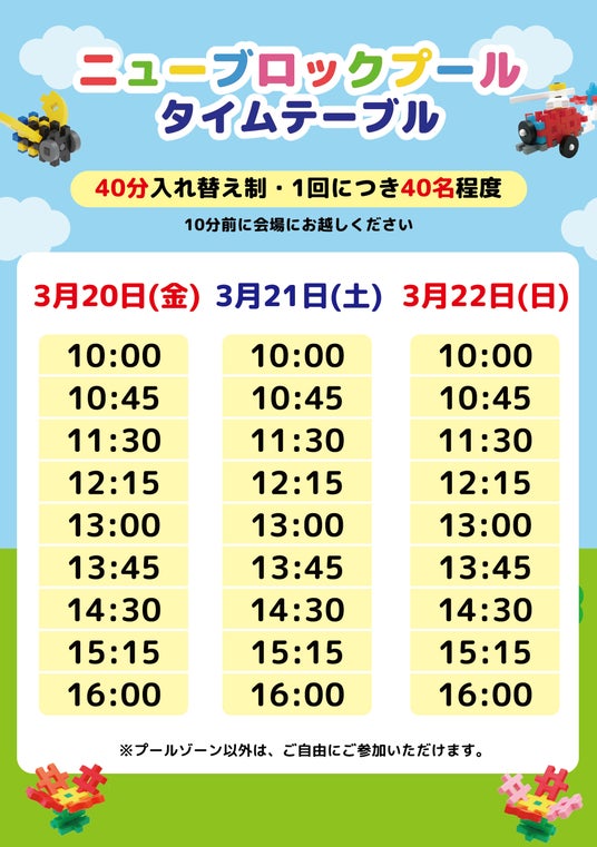 【遊び場ゾーン】入場料無料 ※ブロックプールは40分入替え