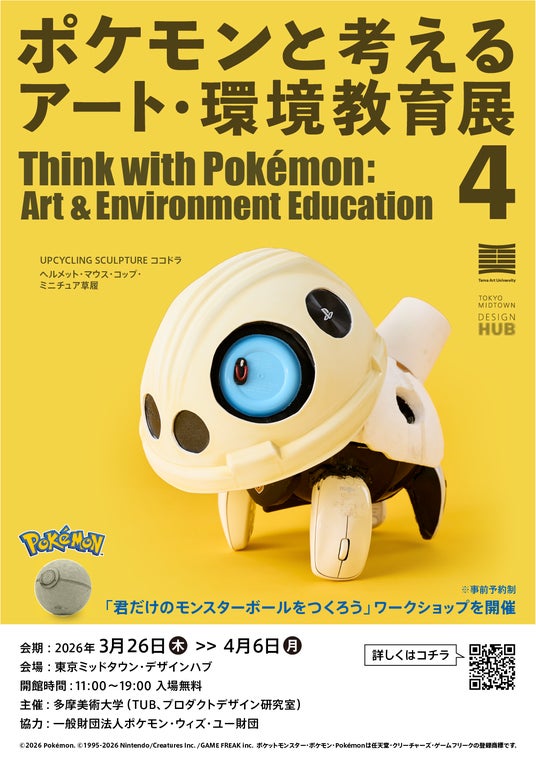 学校法人多摩美術大学(所在地:東京都世田谷区、理事長:青柳正規、多摩美術大学 学長:内藤 廣)は、2026年3月26日(木)~4月6日(月)に、東京ミッドタウン・デザインハブにて、「ポケモンと考える アート・環境教育展 4」を開催します。また会期中には、小学生と保護者のペアで参加できる「君だけのモンスターボールをつくろう」ワークショップも行います。