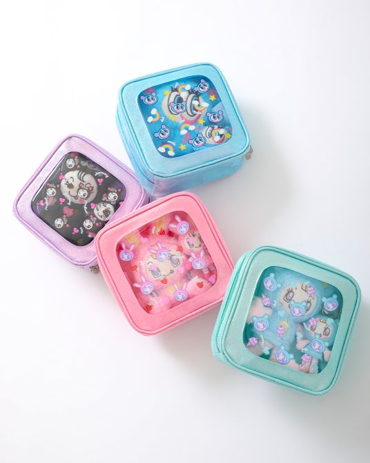スクエアきらきらポーチ:¥2,750(税込)〈中身〉くたくたぬいぐるみチャーム :¥3,520(税込)、ミニぬいぐるみチャーム:¥2,530(税込)