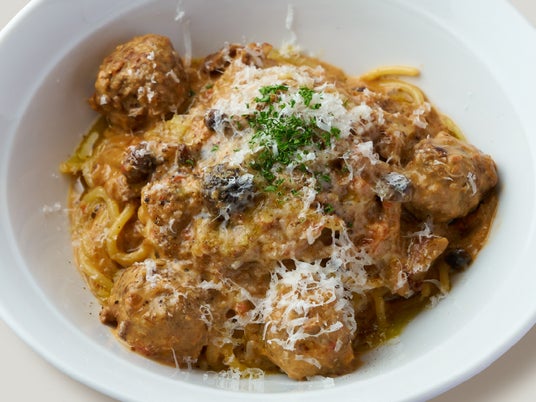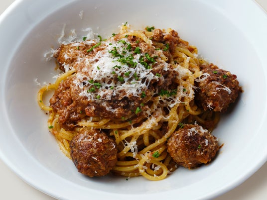 豪州牛100%の肉感たっぷりミートボールと旨味の詰まったミートソースパスタ。