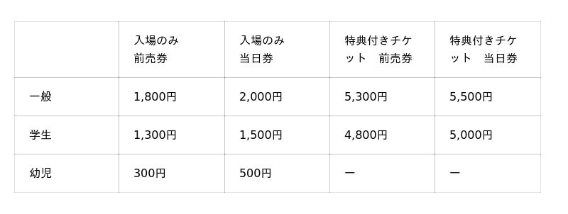 ※「特典付きチケット」の特典はご入場時、会場入口で半券と引換えにお渡しいたします。