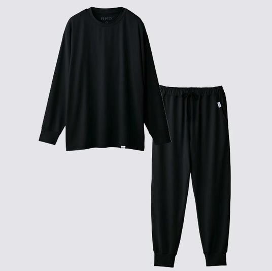 「ReD」スリープ プルオーバー長袖【男女兼用】(ブラック)7,700円/スリープ ジョガーパンツ【男女兼用】(ブラック)7,700円 ゆったりシルエットと吸水速乾で快適な着心地。豊富なカラーと肌触りの良い生地で、血行促進や疲労回復などのリカバリー効果を発揮します。 医療機器製造届出番号 23B2X10055RD0202