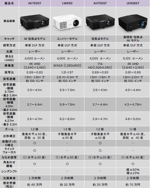 協賛製品:4K短焦点レーザープロジェクター AK700ST
