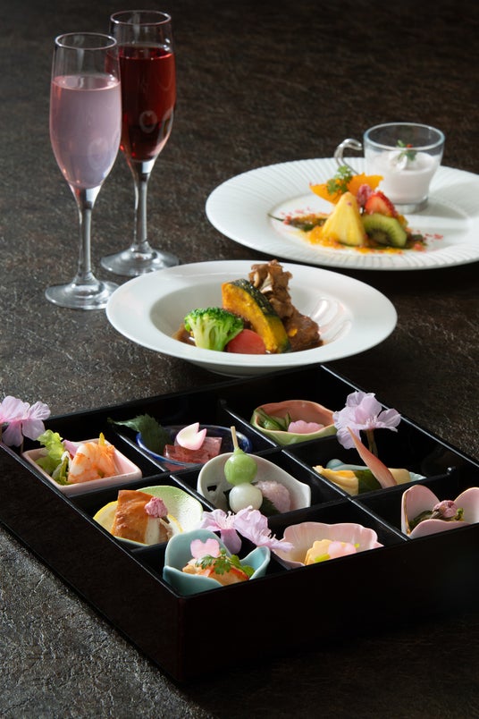九つの升に美しく配された酒肴とともに、ホテルならではのナイトロケーションで夜の花見気分を味わえる優雅なひとときをお楽しみいただけます。