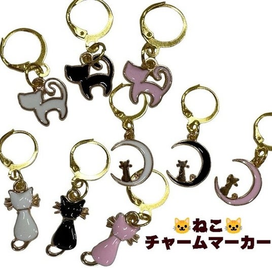 あみものの段数えマーカーやアクセサリーとしてかわいく使っていただける「ねこチャームマーカー」画像の中から3個プレゼント!