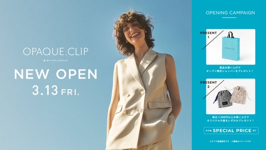 3月13日(金)、レディースファッションブランド「OPAQUE.CLIP(オペーク ドット クリップ)」が新たにオープンいたします。
