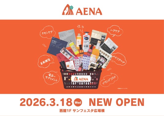 3月18日(水)には、美容・健康関連アイテムを中心に展開する「AENA(アエナ)」がオープンいたします。