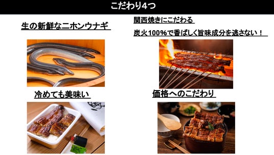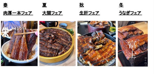 他のうなぎ店にはない「こだわり」と「季節フェア」を実施する事で、年中うなぎを楽しんでもらえるような取り組みを実施