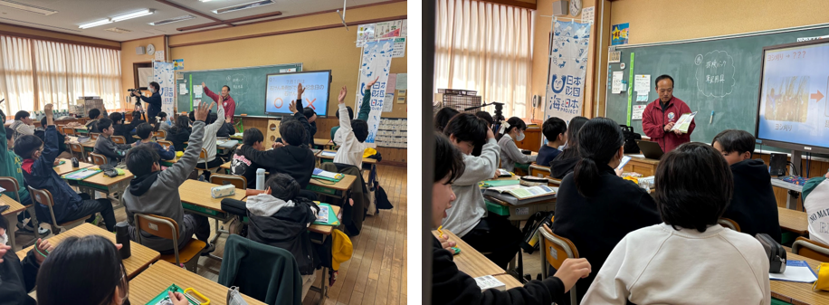 一般社団法人海と日本プロジェクトin滋賀県は、広大で多様な生態系を持つびわ湖が、水質や漁業、温暖化など海と同じく様々な問題を抱えているという「びわ湖の問題」を学び、自ら考えることで小学生が世界の海洋問題へと視野を広げるきっかけを作ることを目的に、新たに制作した学習用小冊子『良くなってる?悪くなってる?びわ湖の今を知ろう!』を用いて、MLGsについてやびわ湖の今の環境について学ぶ「びわ湖環境学習の特別授業」を2026年2月24日に実施しました。