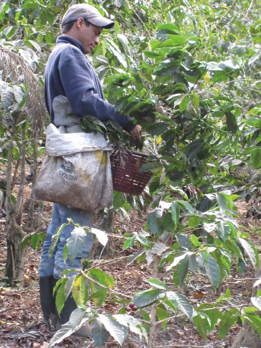 珈琲豆は、完熟果実のみを厳選しています。完熟してワインレッドに染まった果実をほとんど手摘みで収穫。手摘みで行うことにより品質のよい完熟した果実だけを収穫することができます。