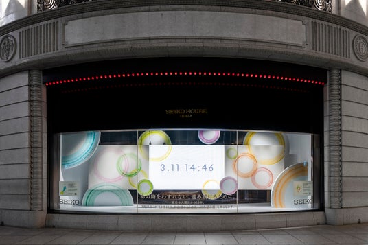 「あの時をわすれない。進み続けるために。」銀座4丁目SEIKO HOUSEのショーウインドウで音と”わ“がひろがる、15個の“わ”のディスプレイを実施