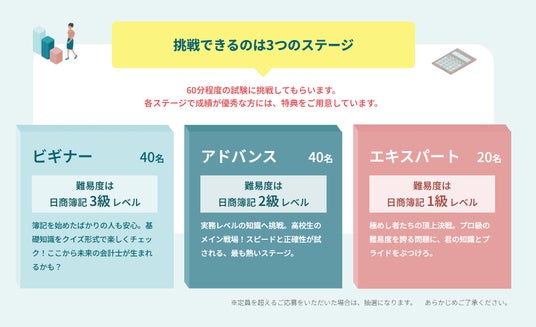 簿記は難しそう、とっつきにくいというイメージを持つ方も多いと思います。でもやってみると、面白い。ニュースや、企業の見方もすこし変わる。そんな体験をしていただきたいと思っています。簿記検定がいわゆる「試験」であるのに対し、このイベントは、試験、講演、クイズ大会など、「学び、出会い、気づき」の場です。