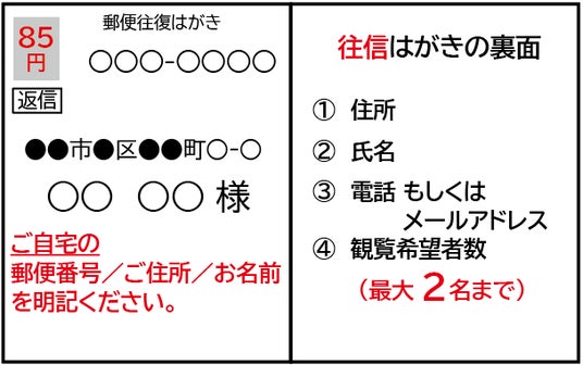 ◆申込方法 観覧をご希望の方は、次頁記入例のとおり「往復はが