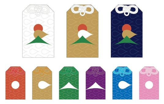 新たな御守のサイズは大小の2種類展開。御守(小)は好みの御守袋と願意を選ぶ方式。下地は琵琶の音色で願いが叶うよう全て琵琶の紋に統一。深い意味合いをシンプルに表現しています。