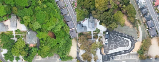 上宮日峯山と下宮境内地のまわりには閑静な住宅地が広がる