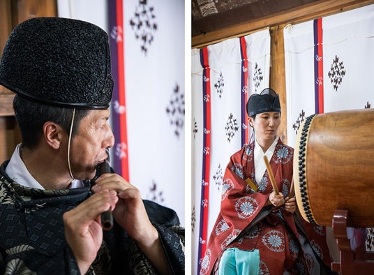 3.室町時代から継承される筑前御殿神楽の笛と太鼓で迎える祈願