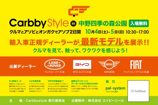 株式会社エイビーリール(東京都)は、2026年3月21日(土)・22日(日)の2日間、八王子えきまえテラスにて、最新の輸入自動車や電気自動車(EV)が一堂に集結する展示イベント「CarbbyStyle(カービースタイル)」第4弾を開催いたします。