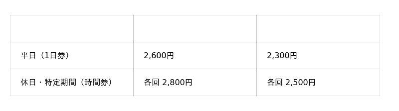 大人・子ども 同一料金(0歳は無料) ※税込価格