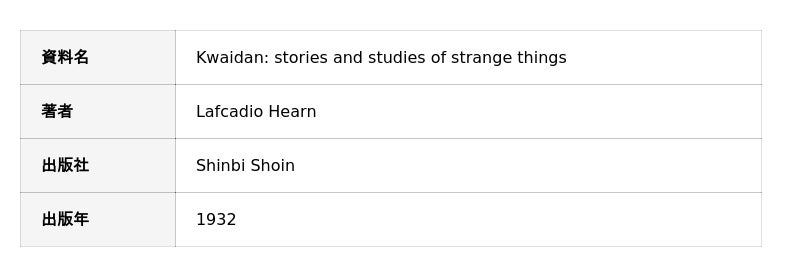 今回出品協力する『怪談』(審美書院版)は、大阪歴史博物館で開催される特別展「小泉八雲 ― 怪談とフォークロリストのまなざし ―」にて展示される予定です。本書は小泉八雲が日本各地に伝わる怪異譚や民話をもとに、英語で執筆した作品集です。